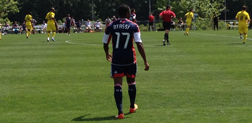 Sainey Nyassi scored the only goal in the Revs Reserves 1-0 win over the Crew on Sunday. (Photo: Sean Donahue)